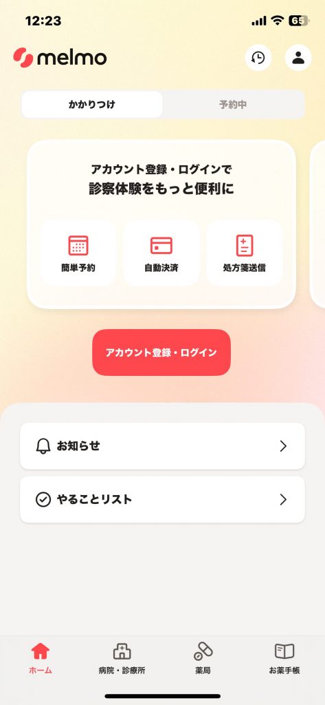 お手持ちのスマートフォンから、オンライン診療・服薬指導アプリ:「melmo(メルモ)」(旧:CLINICS)をダウンロードしてください。